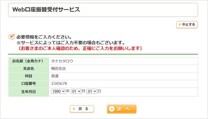 ※はじめに「2-3-2. 口座振替(継続決済)」にて金融機関を選択してください。
