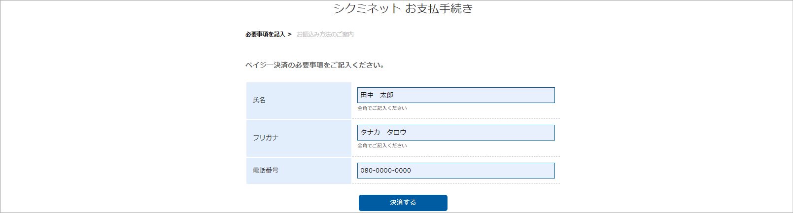 ④必要情報を入力し、内容に問題ない場合は、「決済する」をクリックします。